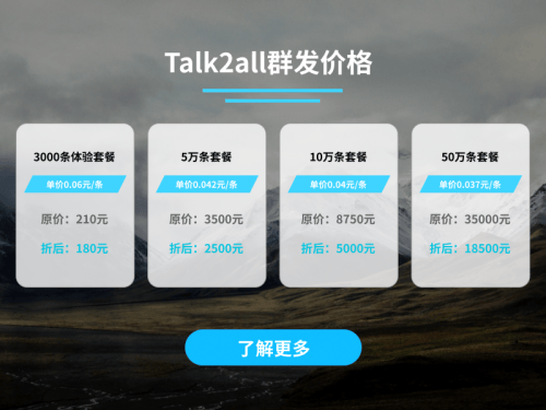 Talk2all国际短信平台支持全球200+国家地区,提供免费测试以及多对一服务支撑,平台自主研发,通道稳定,能助力企业拓展海外市场,东南亚短信优势明显,欢迎各个企业用户前来咨询。
