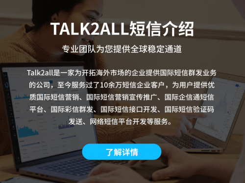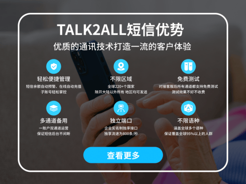 可以从以下几个方面来挑选适合企业自身的国际短信平台,如是否有优质的通讯技术、是否多通道备用、是否免费测试、短信明码实价等等。推荐使用talk2all国际短信平台,全球发送短信畅行无阻,帮助更多企业走向世界。