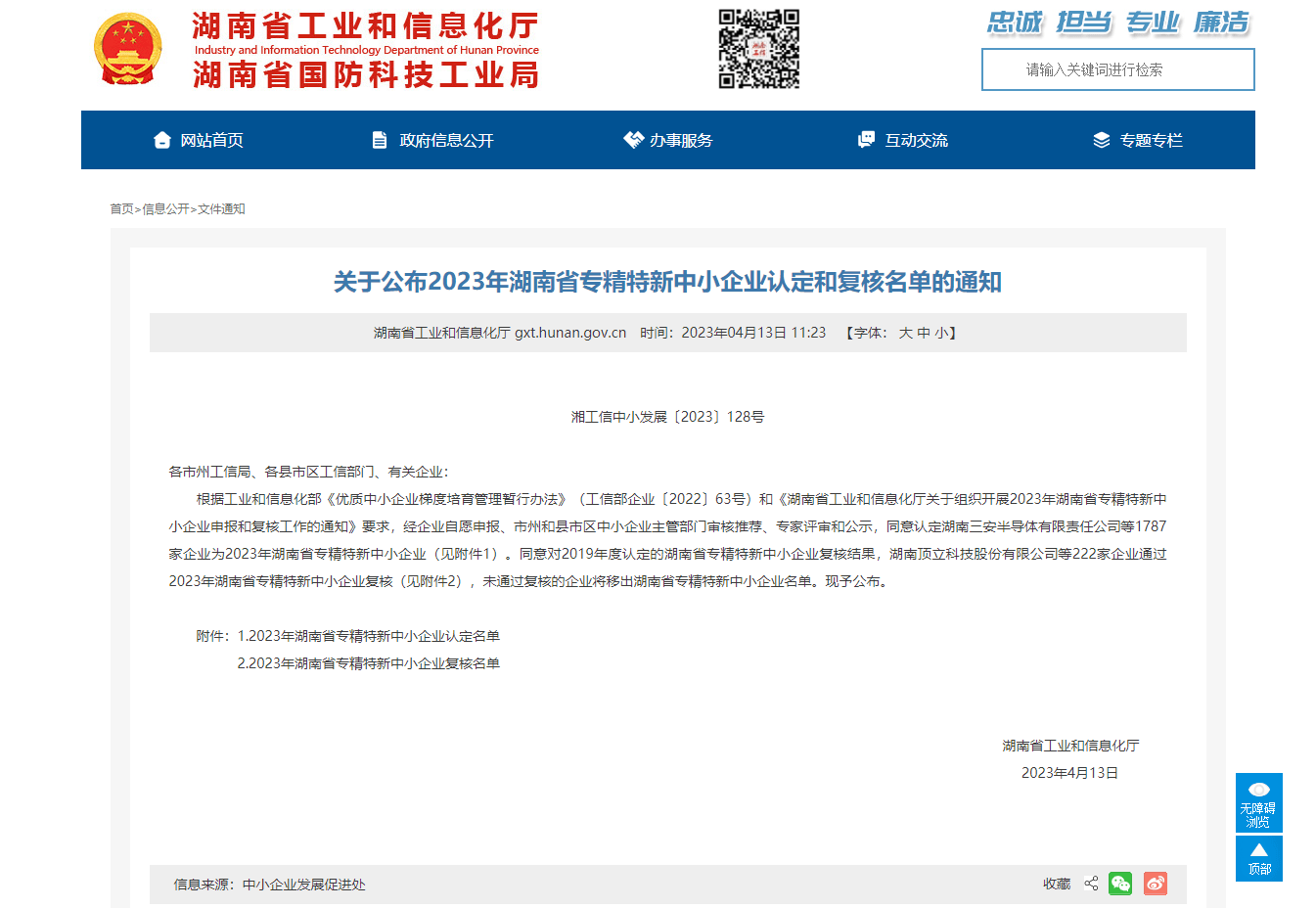 喜报:热烈祝贺我司获评"湖南省专精特新中小企业"