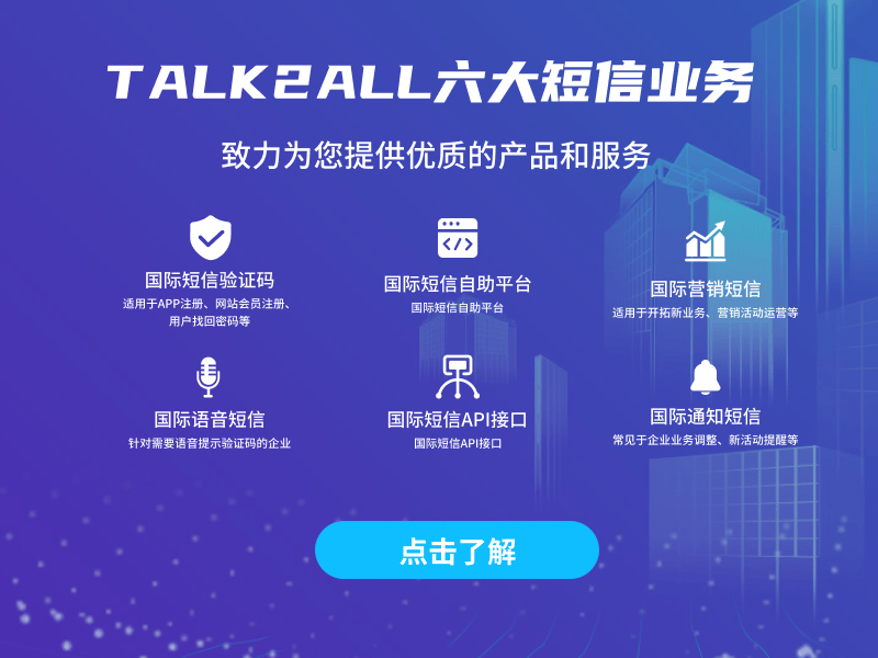 不再局限于本地市场的狭小舞台,成为全球短信霸主,强化你的线上影响力,征服新市场!借助国际短信平台的力量,将你的品牌或产品推向全球舞台,开启新的商机和成功之门。抓住这个数字化时代的机遇,扩大你的影响力,实现全球商业成功。