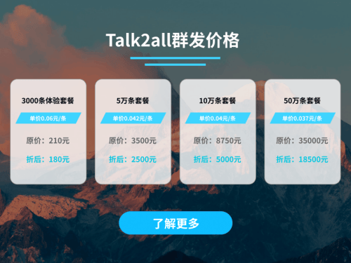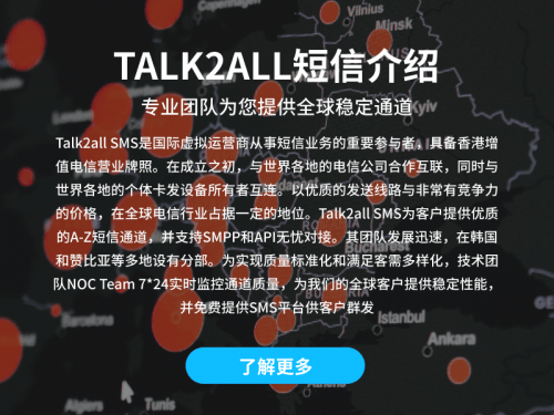 像Talk2all这样正规的国际短信平台,与用户签订正式合同,严格保障客户的信息安全,速度快,到达率高,稳定性好,且售后服务到位,让用户安心,放心,省心。