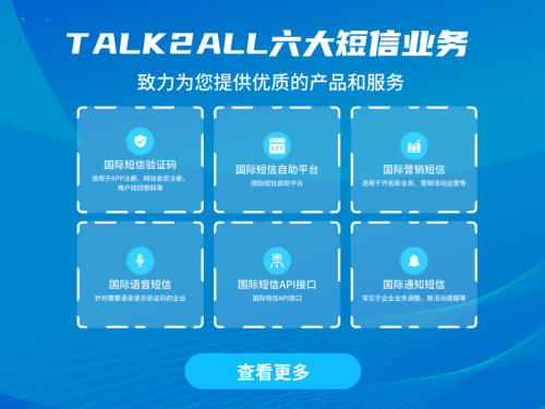 Talk2all国际短信覆盖全球两百多个国家和地区,支持各国语言。平台具备各种运营资质,专业的技术团队,可提供免费测试,操作简单,功能齐全,应用场景广泛,三网合一优质通道,通知短信5s送达、送达率99%,速度快,到达率高,稳定性好,不限国家和地区,用户可以随时发送到目的地,有效的为企业和客户建立链接,为企业拓展海外市场助一臂之力。售后客服24小时在线,解您后顾之忧。